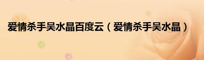 大家好,我是小科,我来为大家解答以上问题。爱情杀手吴水晶百度云,爱情杀手吴水晶很多人还不知道,现在让我们一起来看看吧!