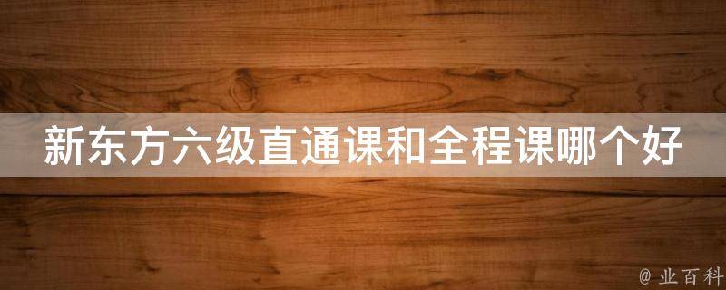 视情况而定,新东方六级直通课和全程课各有优势,具体取决于个人需求和实际情况。六级直通课主要通过全面讲解六级词汇、语法及考试各单项,提供一站托管式教育,让考生轻松提分。而新东方六级全程课主要是讲单词、语法和考试技巧,辅修课程包含听力、阅读、翻译、写作四个部分。