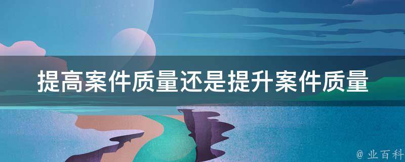 提高案件质量和提升案件质量都可以。在提高案件质量这个表达中,提高表示在原有的案件质量的基础上进行改进或增加,例如通过增加调查的力度、增加人力资源等来改进案件的质量。而在提升案件质量这个表达中,提升表示将案件质量提升到一个更高的水平或标准,例如通过引进新的技术、增加专业人才等来将案件质量提升到更高的标准。