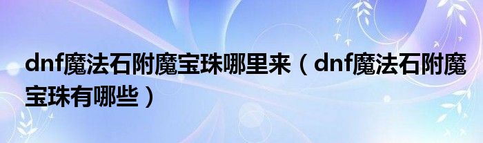 大家好,小夏来为大家讲解下。dnf魔法石附魔宝珠哪里来,dnf魔法石附魔宝珠有哪些很多人还不知道,现在让我们一起来看看吧!