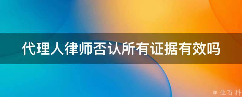 代理人律师否认所有证据没有效,律师如果对对方的所有证据都不认可,并不能达到维护自己委托人的利益,反而让法官反感,认为该律师耍赖,影响了法庭的审理。作为代理律师,必须对案件非常熟悉,对方的证据是不是真实,必须发表意见。