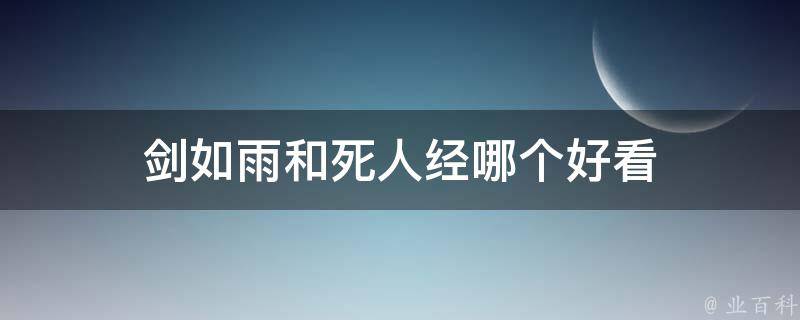剑如雨和死人经都很好看,具体取决于个人的喜好。《剑如雨》的情节跌宕起伏,充满了奇幻和武侠元素,主角的成长历程充满了艰辛和挑战。而《死人经》是一部网络武侠悬疑小说,更注重人性探索和社会政治斗争,主角的成长过程也更加复杂和曲折。