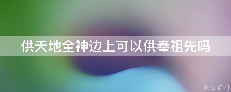 最佳答案供天地全神边上可以供奉祖先,但神灵牌位要放在稍高的地方,祖先牌位放置在稍低的地方。天地全神是指道教中供奉的神灵,包括玉皇大帝、太上老君、西王母等。这些神灵被供奉在道观中,以祈求福祉、平安和健康。祖先是指已经去世的祖先,包括家族中的先祖和宗教中的先祖。
