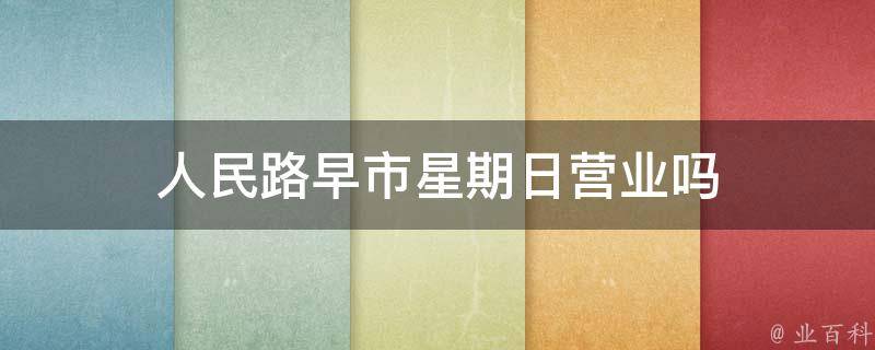 最佳答案人民路早市在星期日营业。人民路早市是抚顺市的大型早市,每天早上5点30开市,晚上8点左右结束。该市场内共有商户近千家,其中三分之二为固定商户,三分之一为流动摊位。市场内经营的商品以日用品为主,也有一些服装、鞋帽、箱包、首饰等商品。