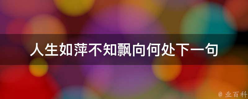 最佳答案人生如萍不知飘向何处下一句是聚散两茫茫。这句话的意思是,人生就像浮萍一样,不知道会飘向何处,也难以预测何时会聚拢或何时会分离,充满了不确定性。这种不确定性也反映了人生的无常和不可预测性。同时,也表达了人生中聚散离合的无常和迷茫,让人感到一种无法掌控和无奈的情绪。