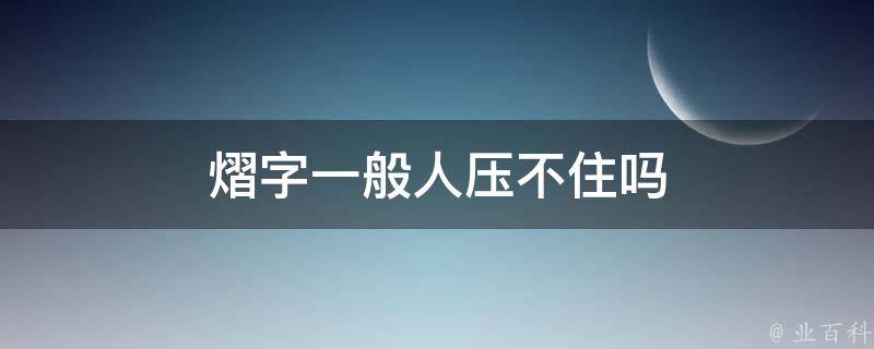 熠字是一般人压得住。熠字是一个比较常见的汉字,它有光明、照耀的意思。在命理学中,熠字也有一定的寓意,它代表着能够给人们带来好运和幸福。因此,无论是从命理学还是汉字本身的含义来看,熠字并没有一般人压不住的说法。