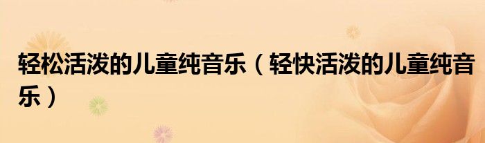 大家好,小联来为大家解答以上的问题。轻松活泼的儿童纯音乐,轻快活泼的儿童纯音乐这个很多人还不知道,现在让我们一起来看看吧!