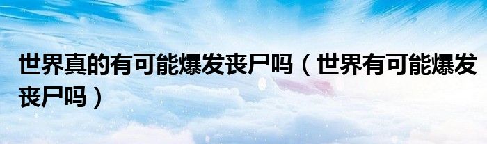 大家好,我是小科,我来为大家解答以上问题。世界真的有可能爆发丧尸吗,世界有可能爆发丧尸吗很多人还不知道,现在让我们一起来看看吧!