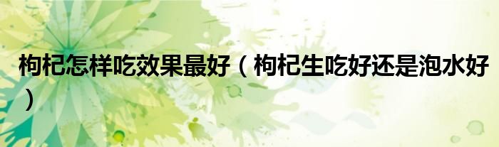 大家好,我是小科,我来为大家解答以上问题。枸杞怎样吃效果最好,枸杞生吃好还是泡水好很多人还不知道,现在让我们一起来看看吧!