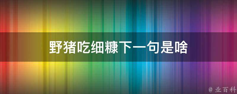 野猪吃细糠下一句是:难以下咽。这句话常常用来比喻一个人不会享受好的生活。野猪平时在山上没有固定的食物,随便找点东西能填饱肚子就行,所以对食物没什么要求。久而久之,山猪习惯了杂食食物,突然吃细糠这种精粮,肯定口味上没有杂食有味道,所以就会出现不怎么吃的情况。