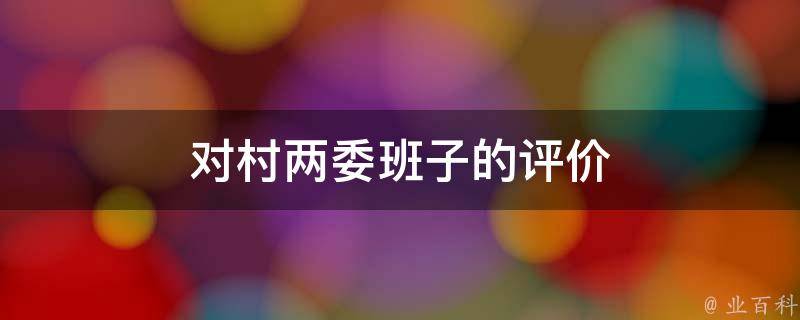 对村两委班子总体评价是非常满意的,自从村两委班子成立以来,各位成员们努力工作,取得了很大成绩,在他们的带领下,我们村子都发生了翻天覆地的变化,这跟村两委班子的成员的努力是分不开的,感谢村两委成员的辛苦付出,希望村村委班子成员们继续努力,取得更好的成绩。