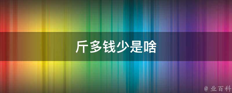 最佳答案斤多钱少指的是某种事物数量很少,并且钱也不多。钱、两、斤都是我国传统的衡器单位,历史上的一两是十钱,一斤是十六两。斤在现代多用于重量单位名称,一斤等于十两,旧制为十六两,合二分之一千克。有了斤的重量,再去算两的重量就很容易了。