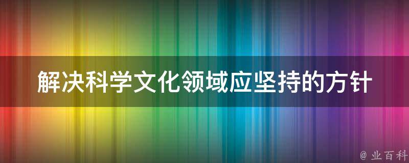 解决科学文化领域的矛盾应坚持的方针是百花齐放、百家争鸣。百花齐放、百家争鸣的方针,简称为双百方针。双百方针的基本精神是:艺术上不同的形式和风格可以自由发展,科学上不同的学派可以自由争论。符合文学艺术和科学技术发展的客观规律,是促进艺术发展科学技术发展进步,促进社会主义文化繁荣和科技兴旺的方针。