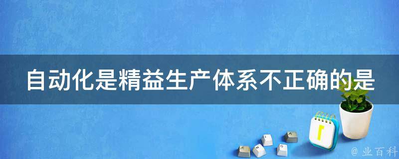 自动化是精益生产体系不正确的是自动化一词出自日文,其含义与自动化相同。实际上,自动化一词是由英文automation翻译而来的。精益生产体系中的自动化主要是指利用自动化设备、机器人等工具来代替人工操作,以减少生产过程中的浪费和提高效率。自动化的主要理念是及时在源头控制质量,通过自动化设备对生产过程中的异常情况进行检测和纠正,以达到减少浪费、提高产品质量和生产效率的目的。