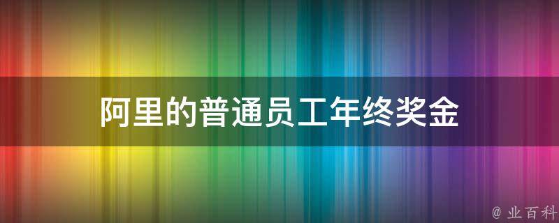 阿里的普通员工年终奖金一般为4-9个月的薪资。阿里巴巴年终奖金是根据公司KPI和个人KPI综合打分的,3-4分之间可拿到4-9个月的薪资,90%的人可拿到3个月。阿里巴巴不同岗位的薪资水平不同,具体年终奖金额也会不同。