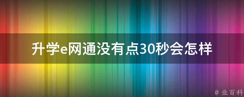 升学e网通没有点30秒会怎样