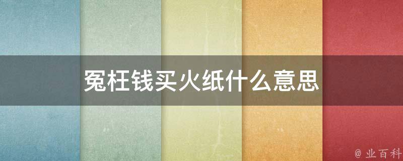 冤枉钱买火纸的意思是花钱买了教训。这句谚语的含义是,花费了大量的钱财购买火纸,但实际上这些钱财并没有起到应有的作用,只是白白地浪费了。它暗示人们在做事之前应该三思而后行,不要盲目地去做某件事,以免浪费时间和金钱。