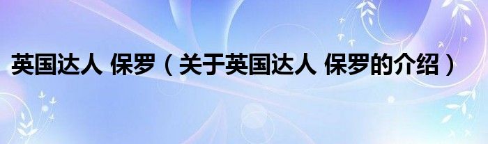 大家好,小夏来为大家解答以上的问题。英国达人 保罗,关于英国达人 保罗的介绍很多人还不知道,现在让我们一起来看看吧!