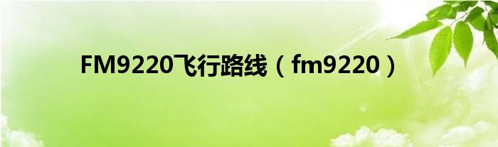 大家好,我是小科,我来为大家解答以上问题。FM9220飞行路线,fm9220很多人还不知道,现在让我们一起来看看吧!