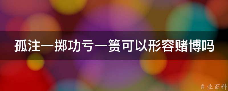 最佳答案孤注一掷功亏一篑可以形容赌博。孤注一掷的本意是指在赌博时把所有的钱一次投作赌注,决一输赢。常用来比喻用尽所有力量冒险行事,以求侥幸成功。这则成语的意思是把所有的钱一次押上去,决一输赢,比喻在危急时用尽所有力量做最后一次冒险,其本身结构为主谓式,在句子中可作谓语、宾语、定语,含...