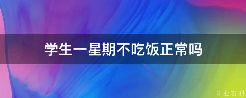 学生一星期不吃饭不正常。一周不吃饭会导致营养不良、身体虚弱、胃部疾病等危害。学生正处于生长发育的关键时期,需要摄入充足的营养物质,如蛋白质、脂肪、碳水化合物、维生素等,以维持正常的生理功能和生长发育。