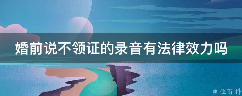 婚前说不领证的录音有法律效力。《民事诉讼法》第六十三条规定了八项证据的形式,包括视听资料:以合法手段取得的录音;是可以作为证据使用的。录音取得方式应当是合法的,在私密场所录制,涉及他人隐私、商业秘密的录音都是不合法的证据材料,可能构成犯罪。