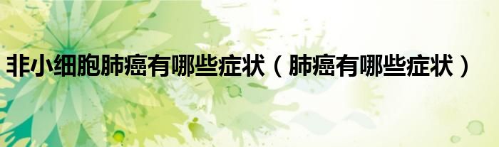 大家好,乐天来为大家解答以下的问题,非小细胞肺癌有哪些症状,肺癌有哪些症状很多人还不知道,现在让我们一起来看看吧!