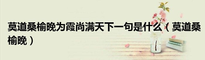 大家好,我是小科,我来为大家解答以上问题。莫道桑榆晚为霞尚满天下一句是什么,莫道桑榆晚很多人还不知道,现在让我们一起来看看吧!