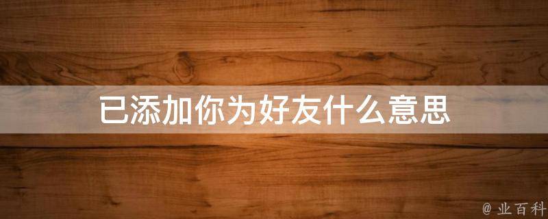 已添加你为好友是指一个人通过某种方式(如手机通讯录、社交媒体、即时通讯工具等)添加你为好友后,你可以和这个好友进行联系。在不同的平台或应用中,添加好友的方式和流程可能会有所不同,但通常需要提供一些个人信息或进行某些操作以确认并接受这个好友请求。