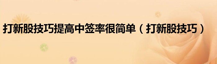 大家好,我是小科,我来为大家解答以上问题。打新股技巧提高中签率很简单,打新股技巧很多人还不知道,现在让我们一起来看看吧!