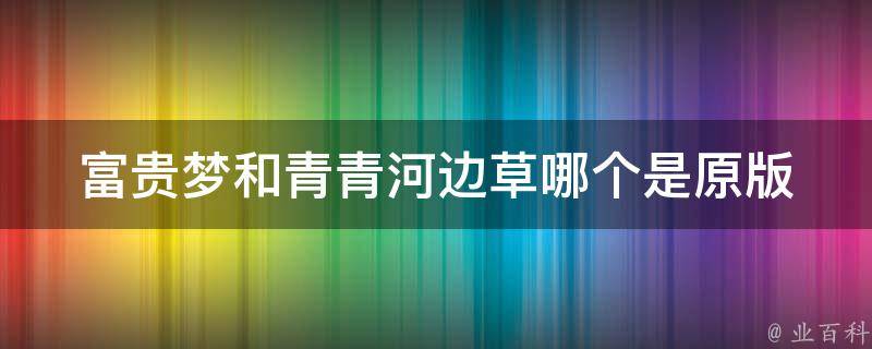 富贵梦是原版。《富贵梦》是由著名歌手童欣作词和演唱的,经典的闽南语歌曲,是原版,这首歌国语版《青青河边草》是高胜美演唱,属于改编版。富贵梦歌词节选:一人一命款,拢是为钱忙,事业命运,是尚盖的看重,有人在怨叹,粗饭来过冬,有人醉生梦死,没焦烦,富贵的眠梦。