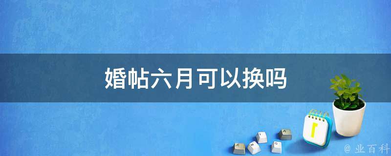 婚帖六月可以换。不过具体时间建议根据当地习俗和新人情况来决定。婚帖是即将结婚的新人,邀请亲朋好友参加婚礼的一种通知方式。在婚期前,新人可以根据自己的实际情况和需要,决定是否要更换婚帖。