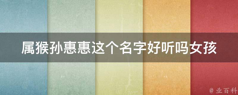 女孩属猴叫孙惠惠这个名字好听,音律完美、平仄相参,念上去朗朗上口,听起来悦耳动听。惠字代表着给予、施舍和恩惠,寓意着宝宝将来会成为一个慷慨、善良、有爱心的人。惠字还有着帮助、支持和关怀的意义,预示着宝宝将来会成为一个乐于助人、关心他人的人。