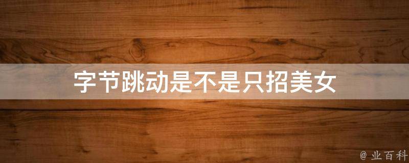 字节跳动不是只招美女。在招聘过程中,字节跳动会根据岗位需求和公司文化特点,选择符合要求的人才。这种选择标准包括但不限于教育背景、专业技能、工作经验、领导力等。同时,字节跳动也注重员工的多样性和包容性,欢迎不同背景和性别的人才加入公司,为公司的发展做出贡献。