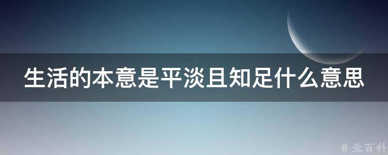 生活的本意是平淡且知足是一种价值观和生活态度的表达,意思是认为生活的真正意义在于过平淡而满足的生活。这种生活态度强调了对内心的平静和满足的追求,而不是追逐外在的物质财富和功名利禄。它认为真正的幸福和满足来自于内心的平和和对现有生活的满足,而不是追求过多的物质欲望和外在的成功。