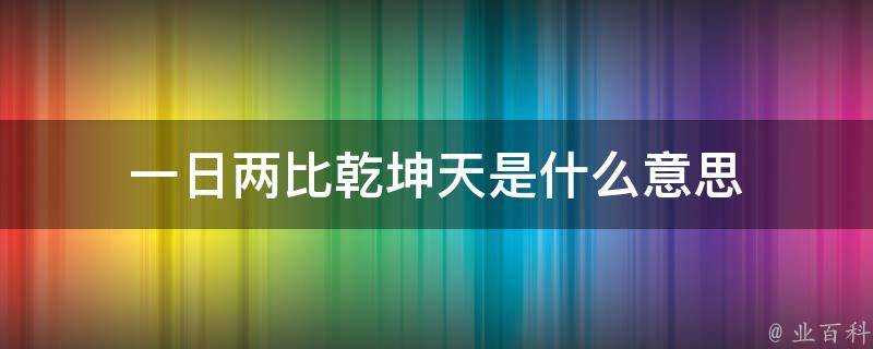 一日两比乾坤天意思是一个人在一天之内面对的不同事物和情境。比如,在一天中,一个人可能会经历工作和休闲、忙碌和放松、喜悦和挫折等截然不同的境遇。进一步延伸,这句话也可以引申为人生的多样性和多变性。人们在一生中经历了各种各样的事情,有喜有悲、有成功有失败,这些经历使人生丰富多彩,犹如一日两比乾坤天。