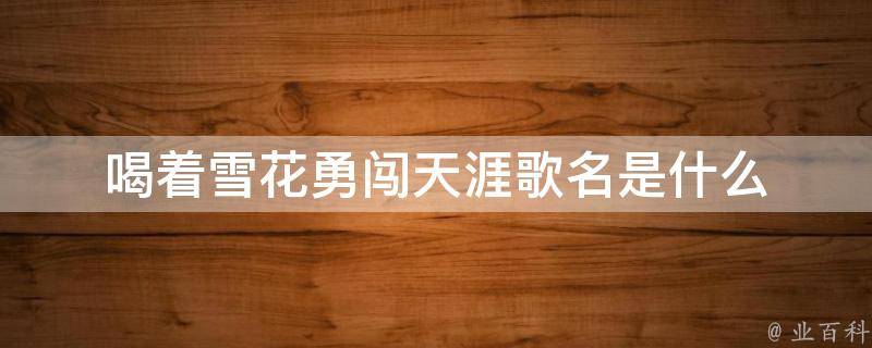 最佳答案喝着雪花勇闯天涯歌名就是《喝着雪花勇闯天涯》。歌词节选:我喝着雪花闯天涯,无惧那风沙,我伸手摘了那晚霞,山河开红花,我喝着雪花闯天涯,醉了也潇洒,这人间天大地也大,风大雨也大,野草任风刮呀刮,枯了一春夏,小河流水哗啦啦,流往别人家。