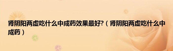 大家好,乐天来为大家解答以下的问题,肾阴阳两虚吃什么中成药效果最好?,肾阴阳两虚吃什么中成药很多人还不知道,现在让我们一起来看看吧!
