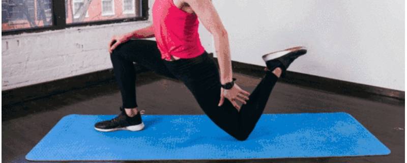 动作一:脚尖朝向正前方,两个脚掌相互平行。前侧腿弓步,膝盖不要超过脚尖。后侧腿伸直,脚后跟不要离地。腰背挺直,躯干向天花板方向延伸。