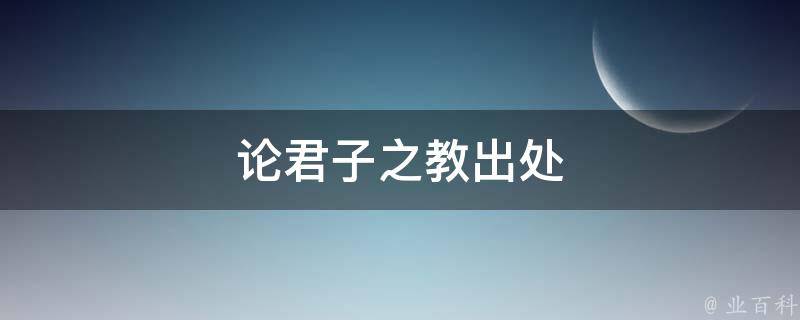 最佳答案论君子之教出处是汉-戴圣《礼记-学记》。原句为:君子之教,喻也,道而弗牵,强而弗抑,开而弗达。意思是:君子教育别人,是让人明白事物的道理,重点在于引导,而不是强迫学习,是通过激励而不是去抑制,是启发而不是一通到底。