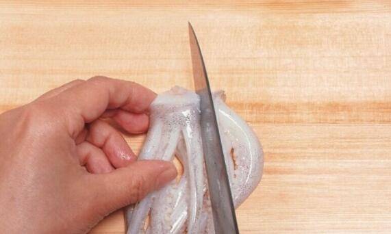 12、乌贼足部的吸盘用手指抓出来,或以菜刀切断即可。