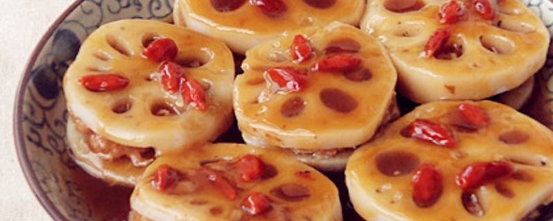 1、准备材料:藕夹6个、盐适量、白糖适量、 生抽适量、枸杞5克、胡萝卜50克。