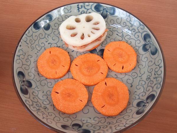 3、再将藕夹放到胡萝卜上。