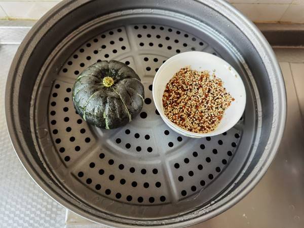 3、南瓜和藜麦放上蒸锅蒸20~30分钟。