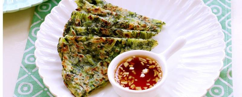 3、平底锅放少许油,用勺子舀一小勺面糊,压平压薄,小火煎,两面煎熟即可。