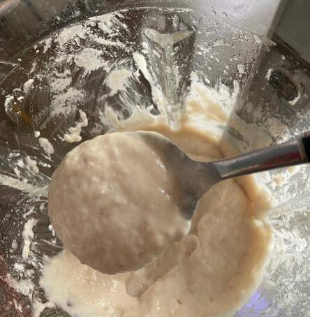 5、倒入木薯粉和开水搅打均匀。