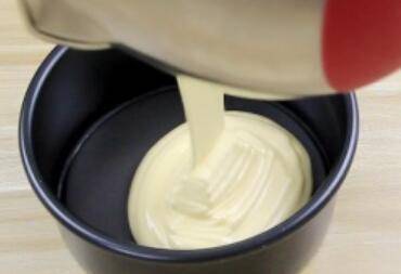 7、倒入模具中,用刮刀或是平底铲抹平表面,将烤盘放在另一个烤盘里,另一个烤盘里加入1~2厘米的水,145-150度烤60-70分钟即可。