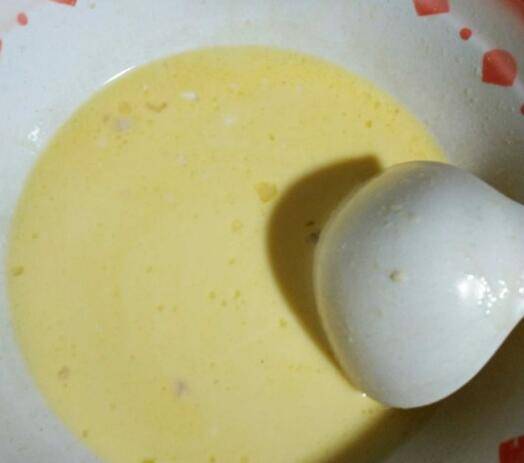2、鸡蛋4个搅匀,红薯粉加适当水搅匀后与鸡蛋混合,能增加蛋皮的韧性嚼劲,不易破皮。
