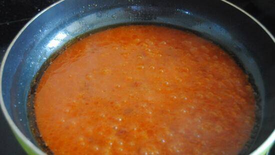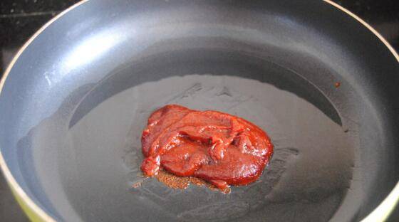 5、锅内放入适量食用油,放入韩式辣酱。翻炒至冒香气。
