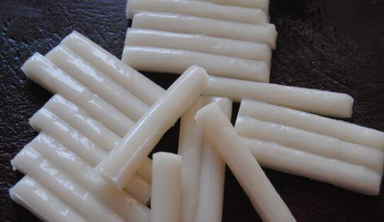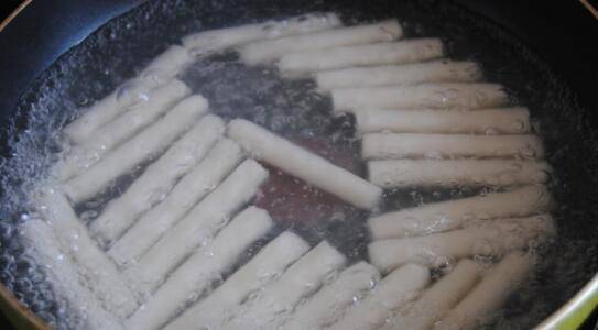 3、倒入年糕,继续煮沸,直到年糕软得可以稍弯即可。
